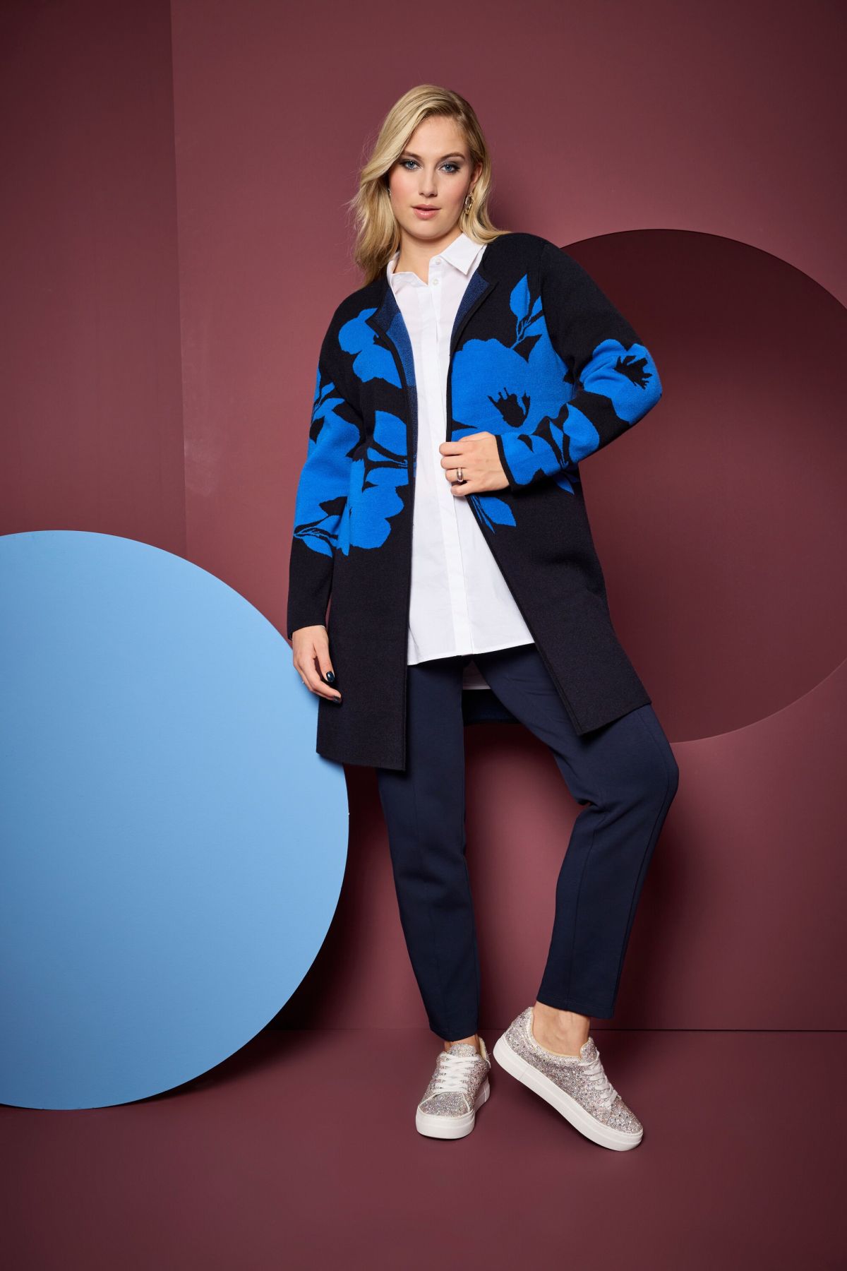 Жилетка от фина, плетена материя с неонови цветя. Отворена отпред с дълги ръкави. Стил и елегантност в ежедневието.