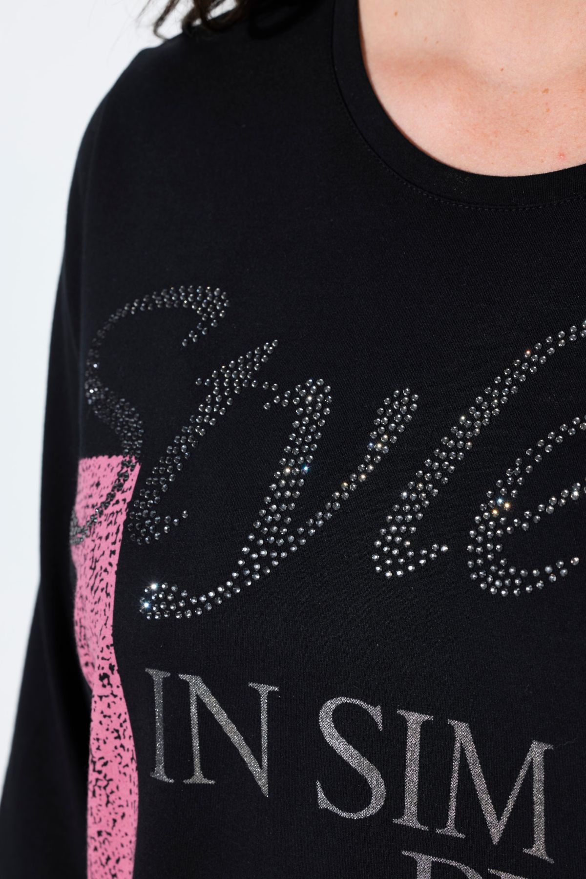 Тениска с графичен принт и надписи отпред. С кръгло деколте и 3/4 ръкави. От мека, памучна материя.