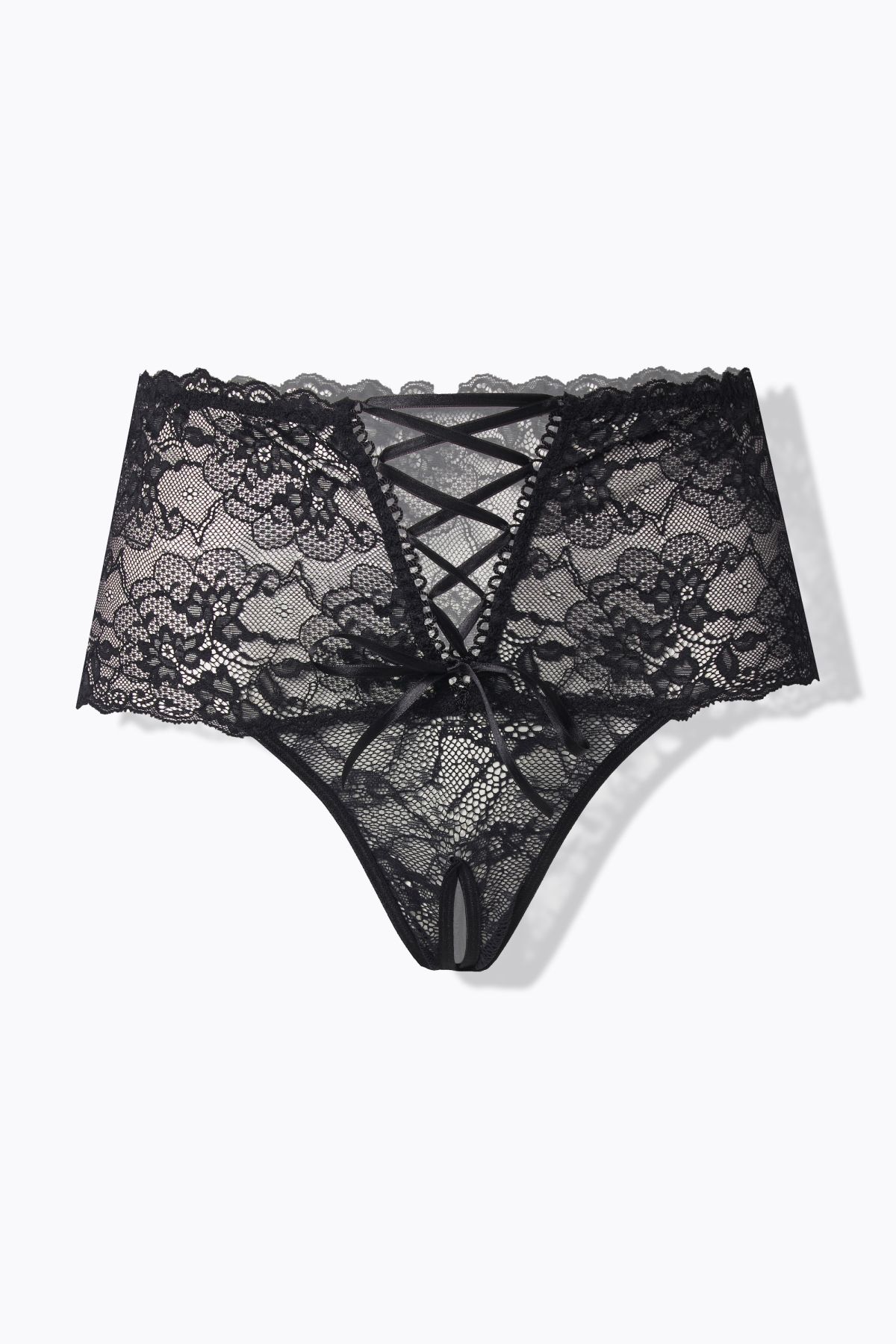 Прашки от дантела с еластична талия и връзки отпред. С комфортни отвори на краката.