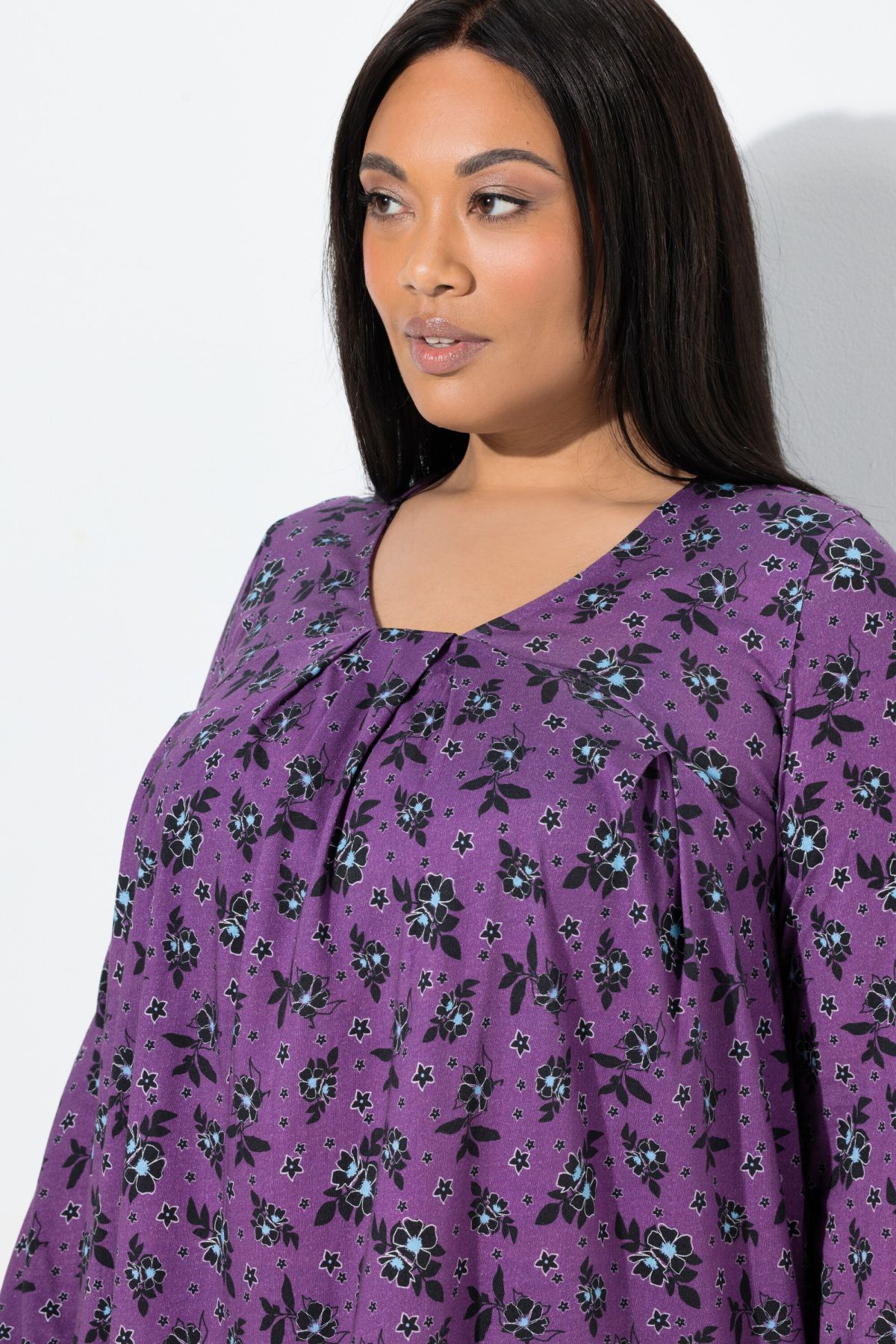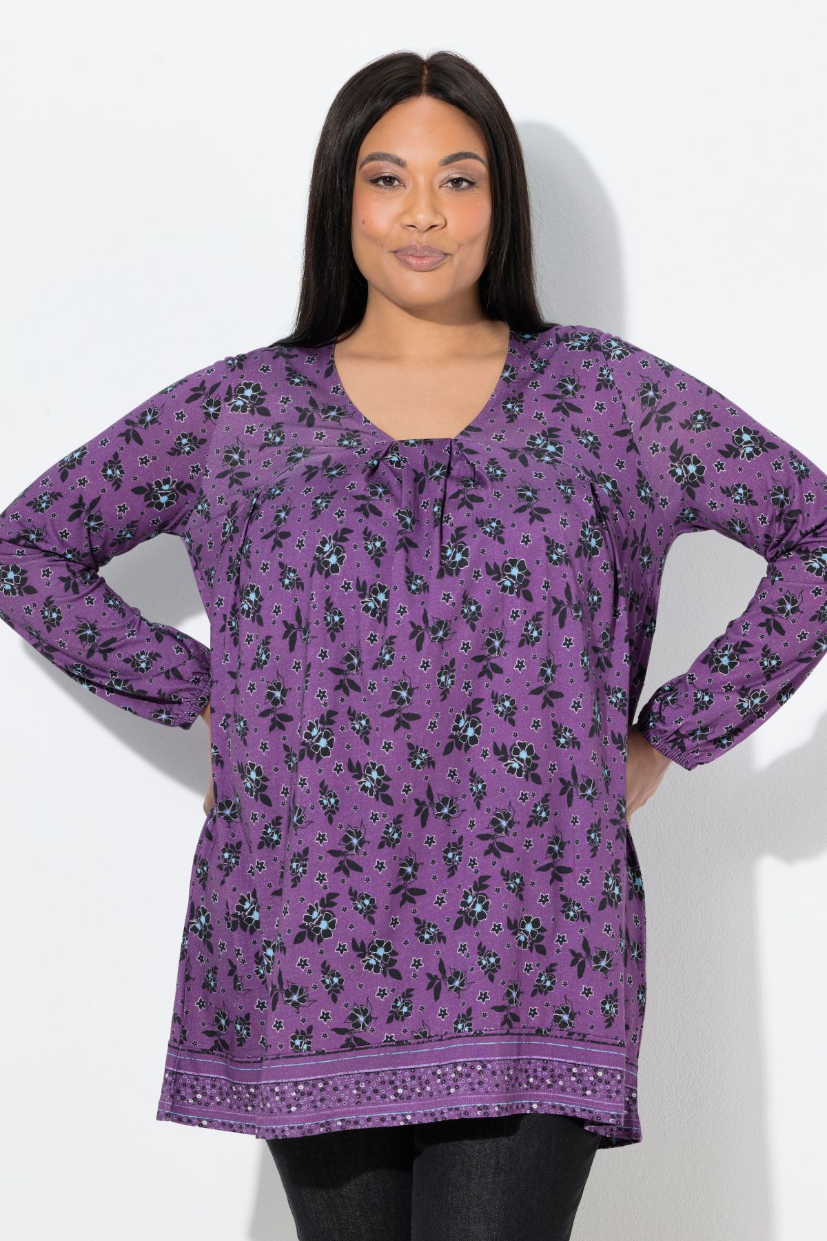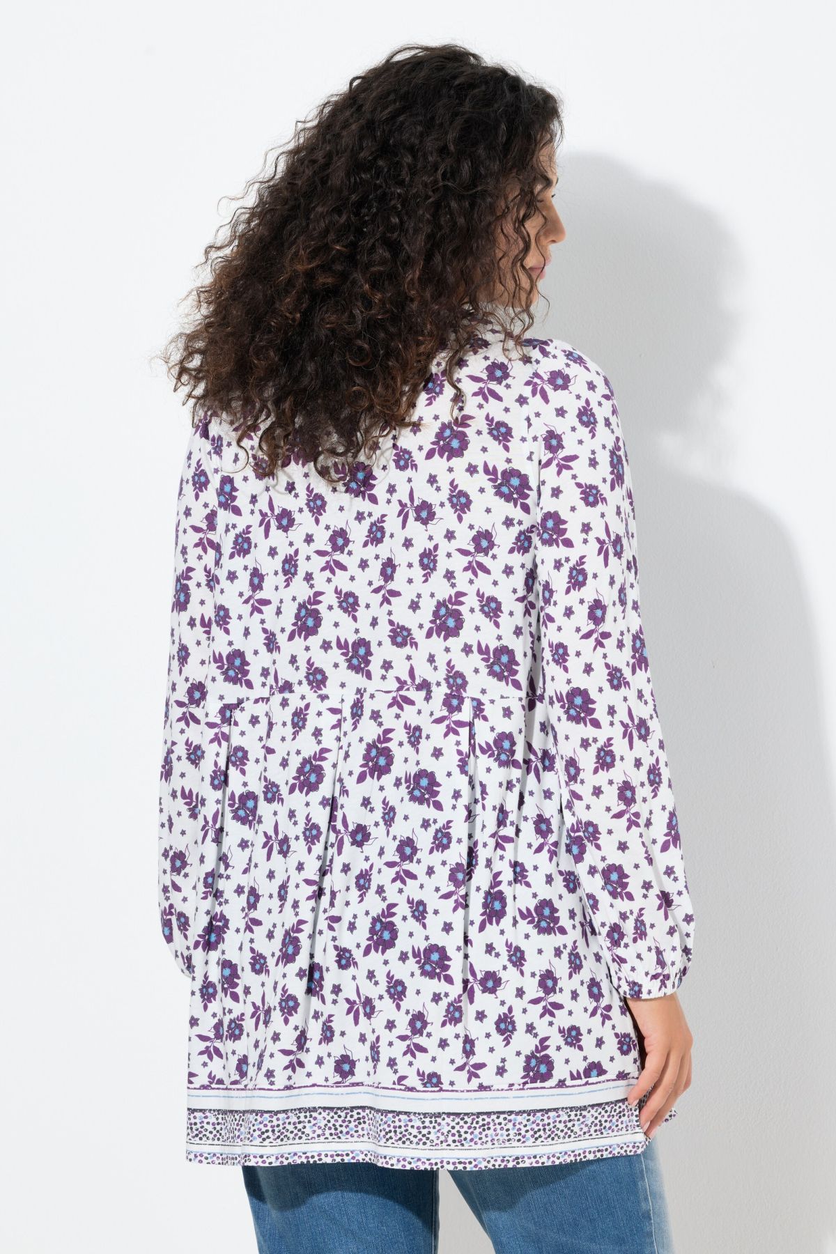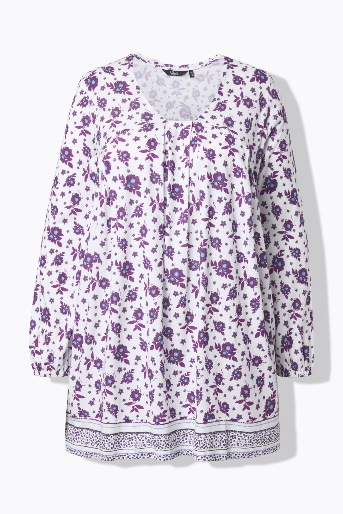Туника с модерен флорален принт с А - линия на силуета. С кръгло деколте и дълги ръкави. От мека, памучна материя.