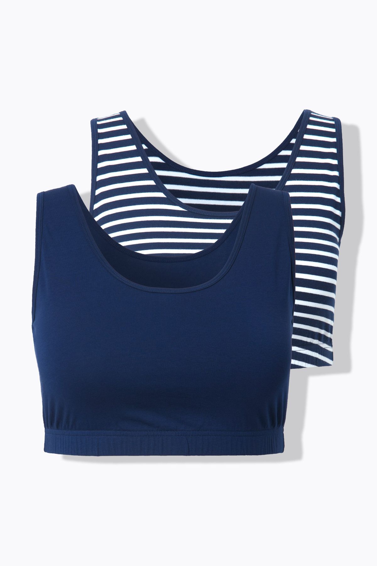 Комплект от 2 броя бюстиета с принт на райета и едноцветно. С кръгло деколте, еластична талия под бюста, широки, комфортни презрамки и памучна материя.