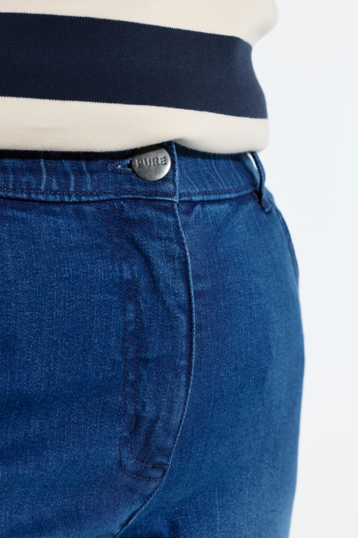 Дънки тип Bootcut в ретро стил от еластична материя, перфектни за ежедневието. С фиксирана талия с гайки за колан, копче и цип отпред. Дизайн с прави крачоли.
