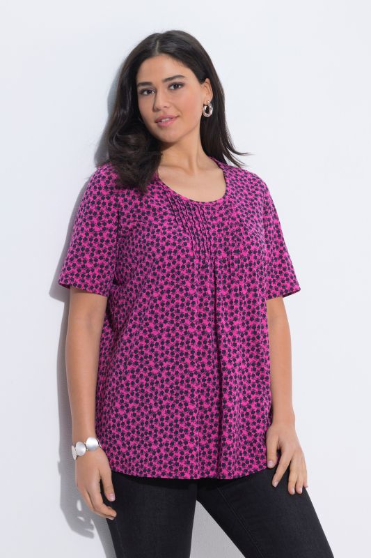 Floral Print Short Sleeve Pintuck Tee