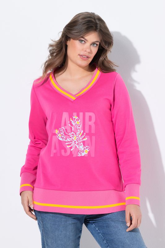 Sweatshirt, comfortable fit, made of soft sweatshirt fabric with a butterfly pattern. V-neck, dropped shoulders. Rounded hem, longer at the back.
