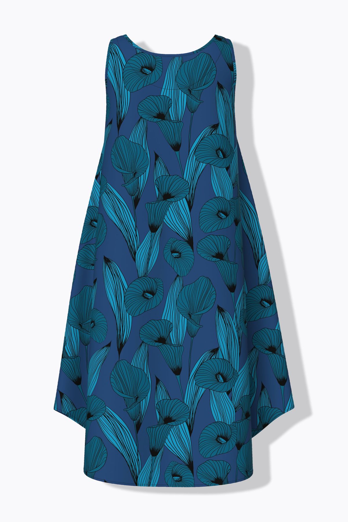 Calla Lily Print Sleeveless A-Line Dress