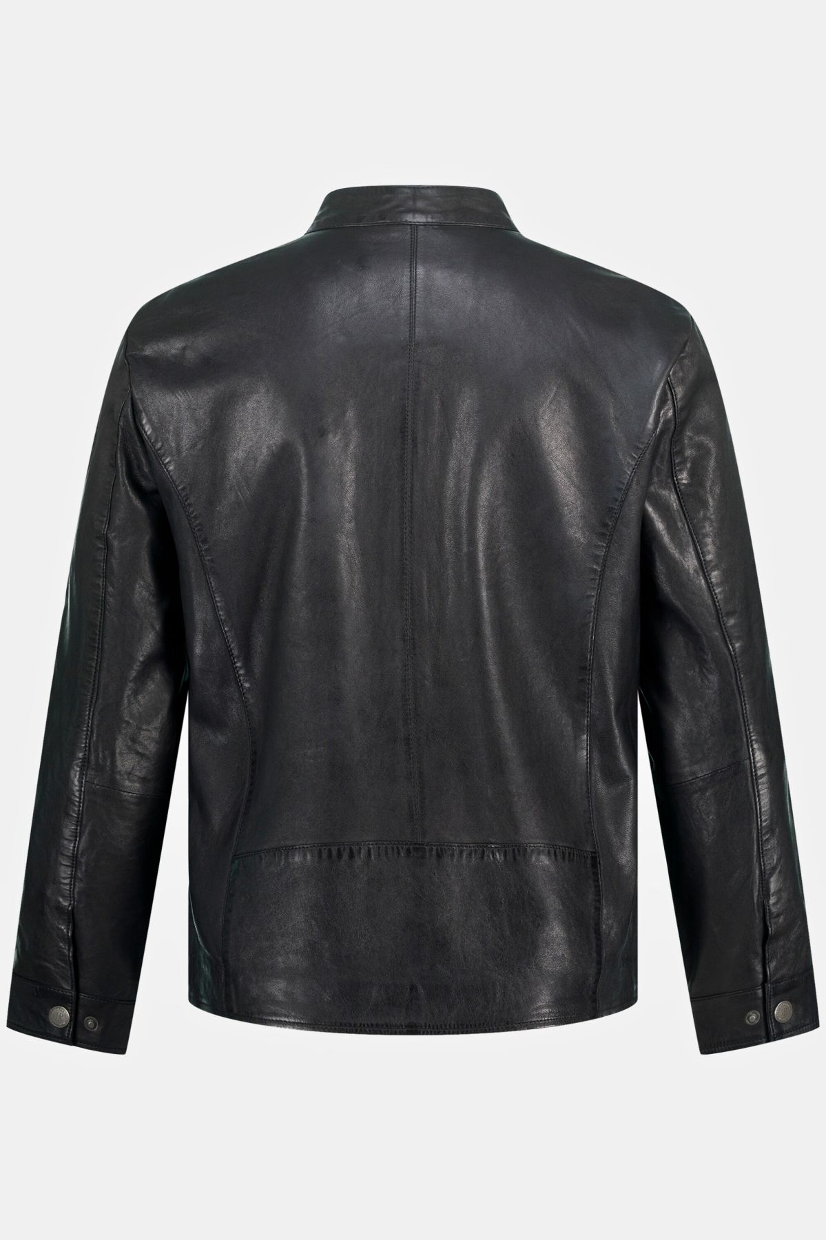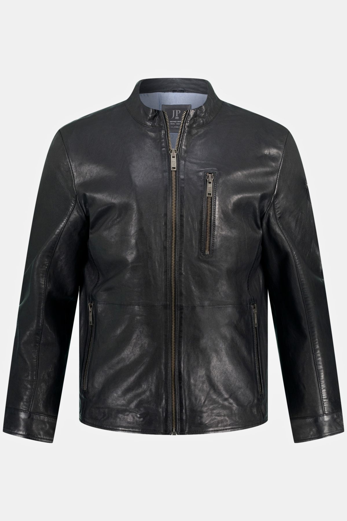 Biker Style Jacket - full-throttle! Core model made of high quality lamb nappa leather. Clean biker look with stand-up collar and robust metal zipper. 2 zip pockets, extra chest zip pocket. Sleeves with adjustable cuffs. High quality chambray lining - perfect wearing comfort. The tested fit will convince you even in large sizes. JP1880 - for real men only!