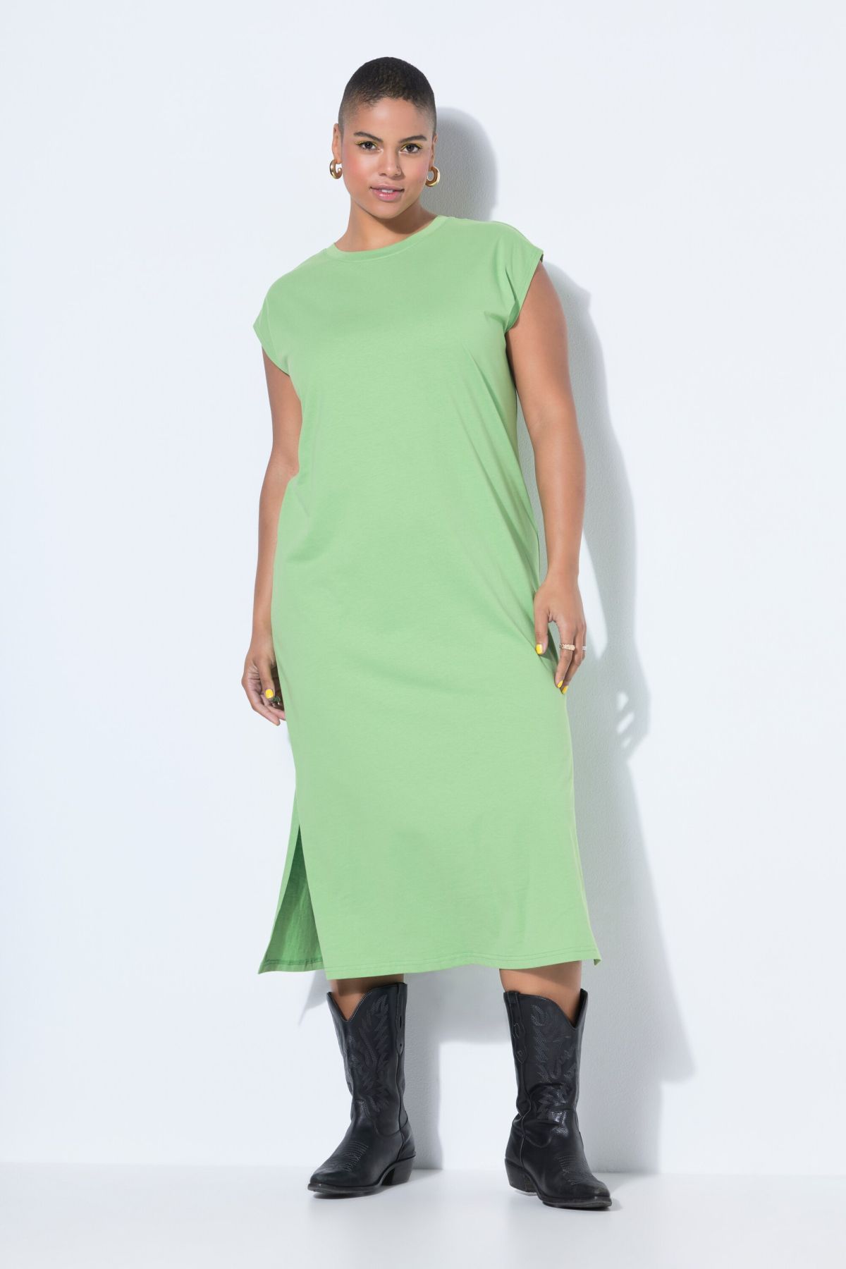 Classic Cap Sleeve Jersey Dress - A staple piece on its own or as part of a layered look. Crew neck, cap sleeves, oversized fit.