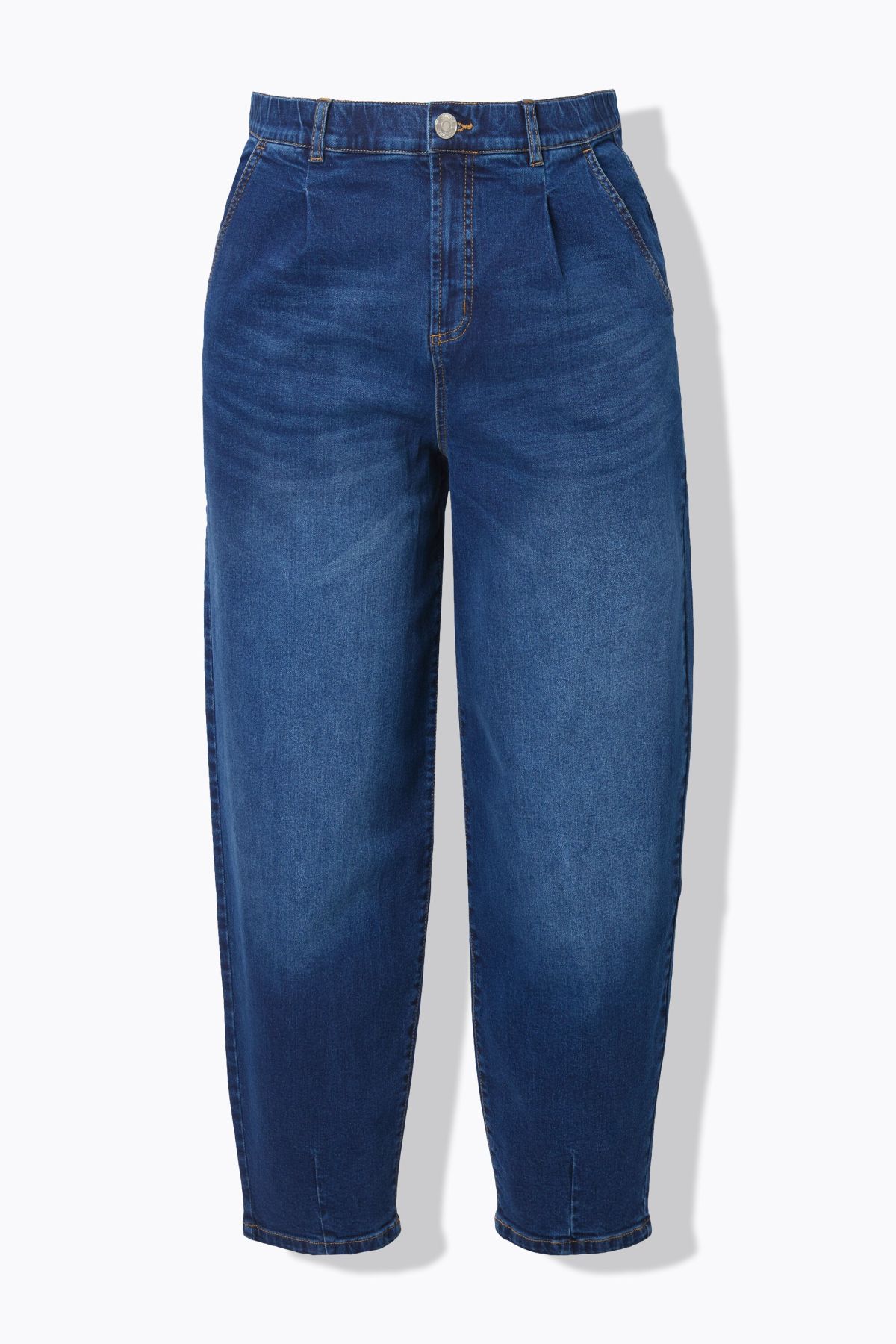 High-waist 5-pocket dark blue denim balloon fit jeans