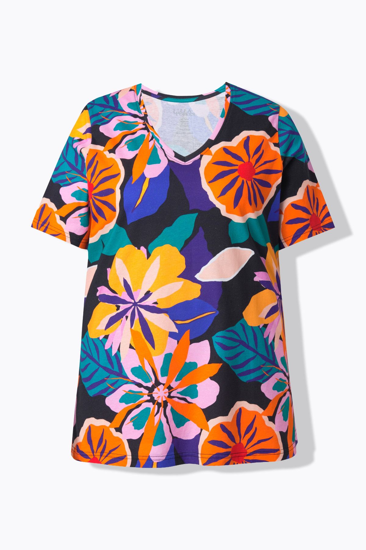 T-shirt, comfortable fit, with floral pattern. V-neck, short sleeves.
