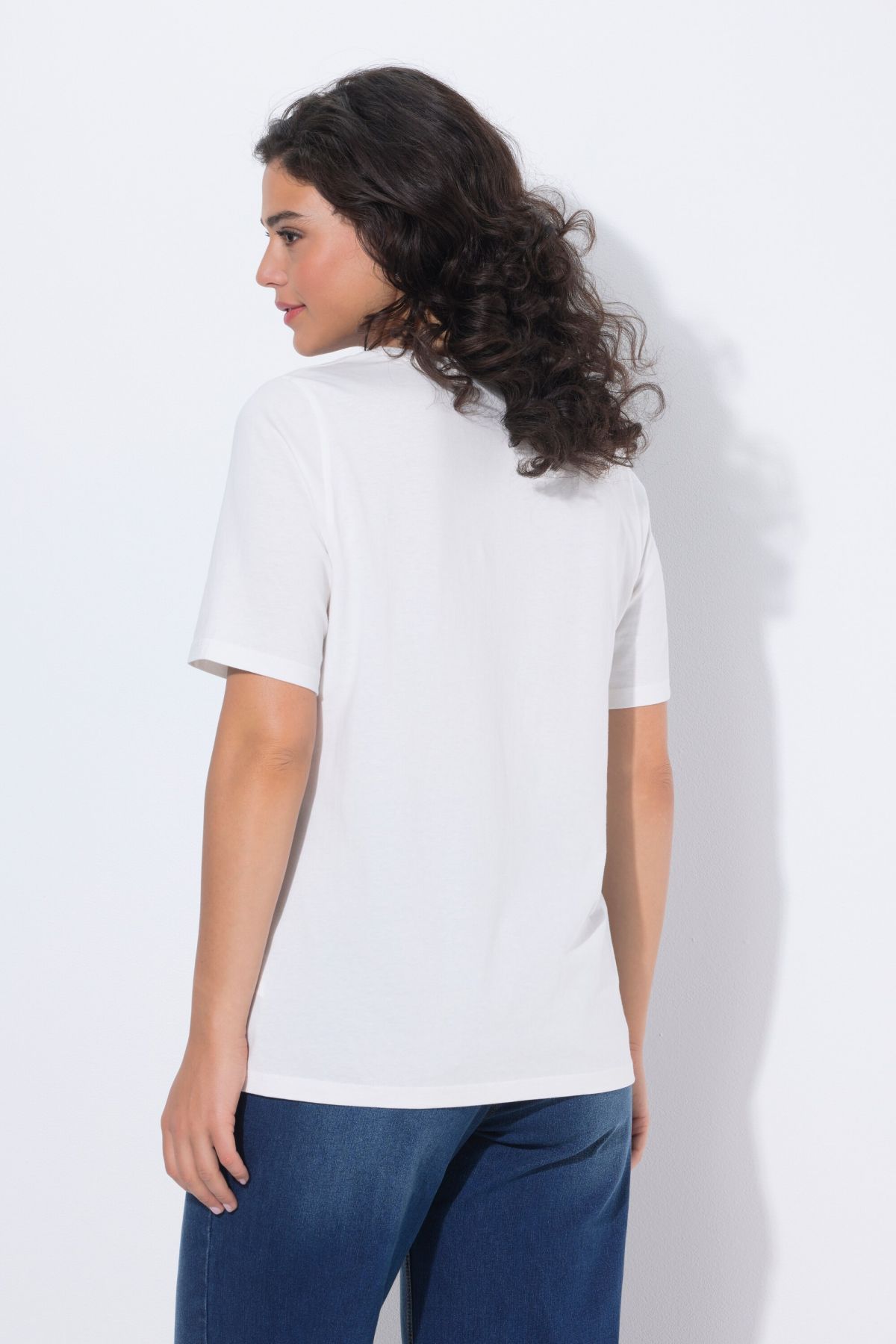 T-shirt, classic fit, made of soft jersey with decorative beads on the colorful SUN motif. Round neck, short sleeves.