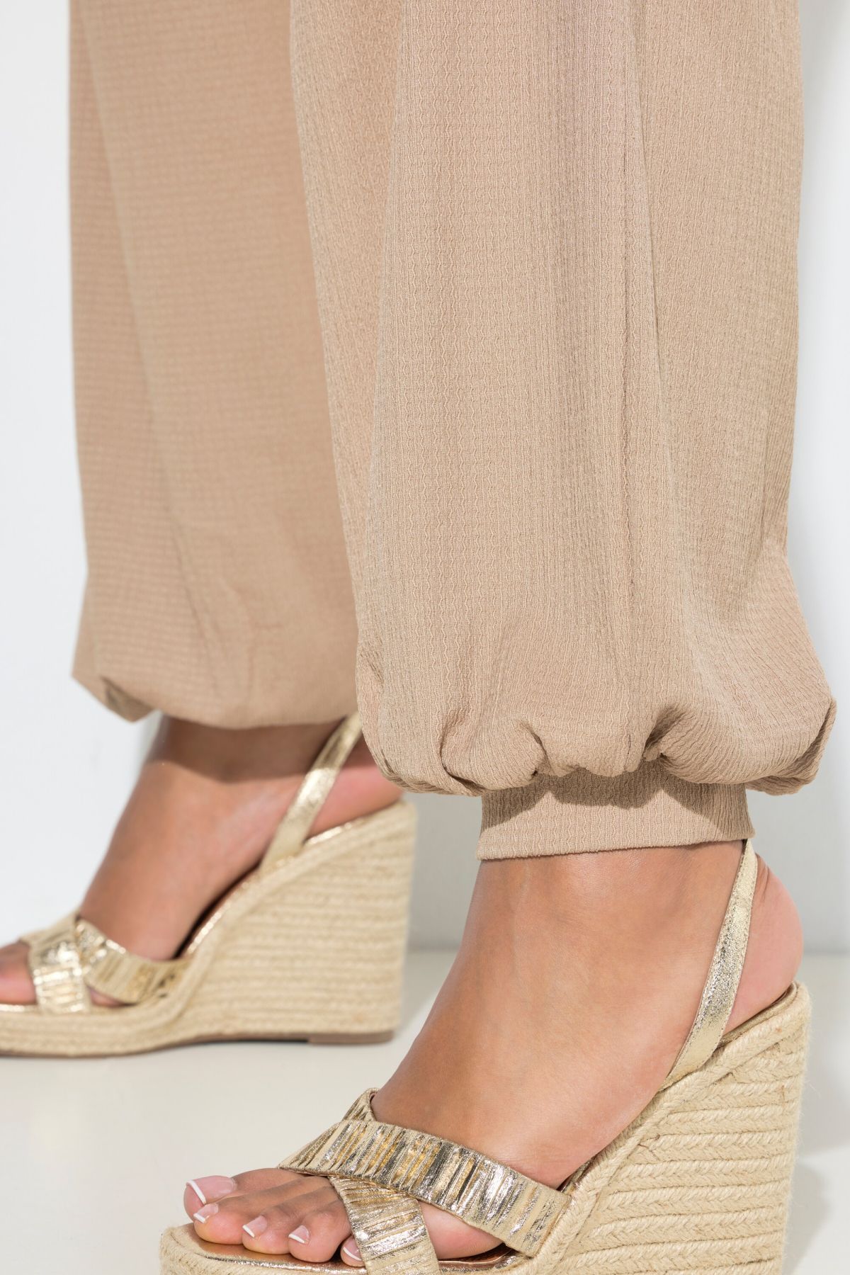 Wide-leg trousers made of soft crepe with an elasticated waistband and side pockets. Elasticated hem.