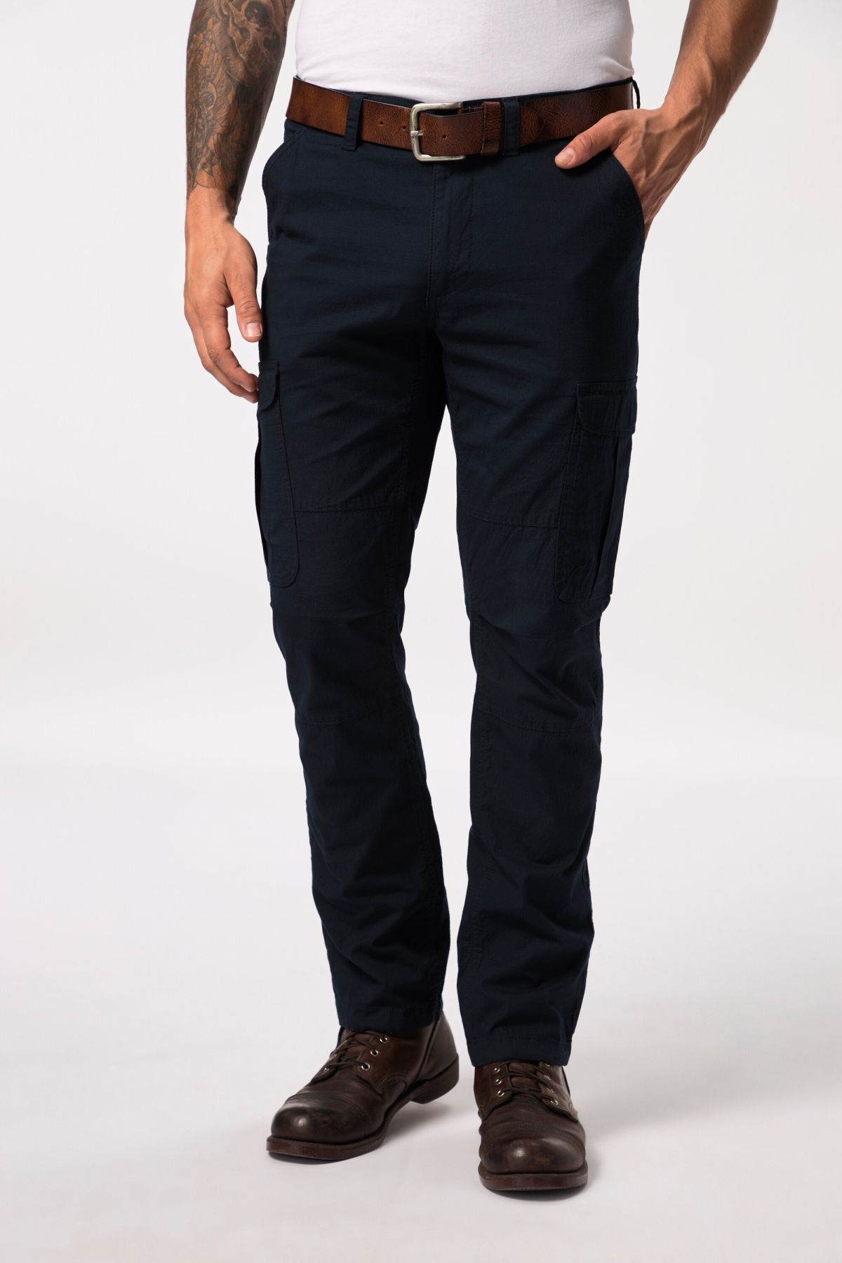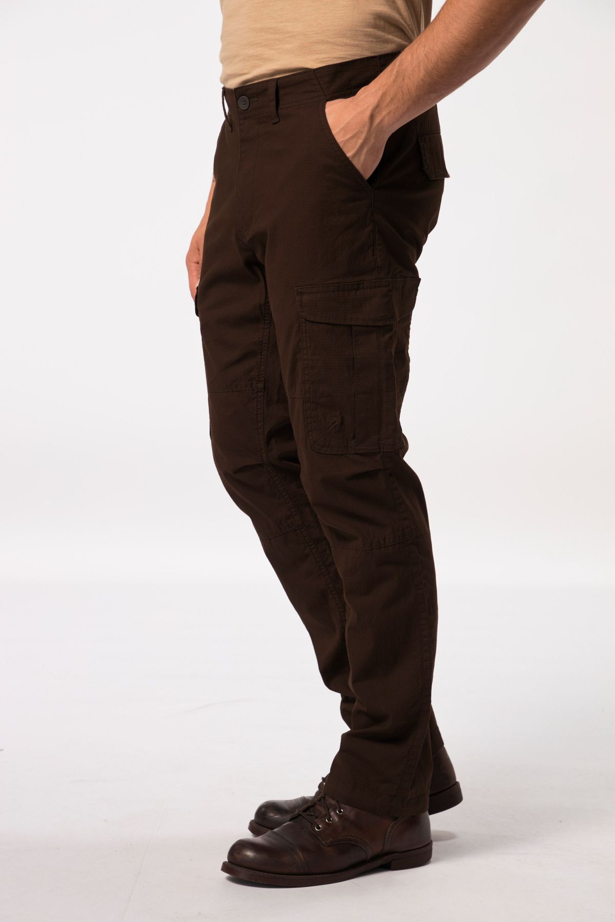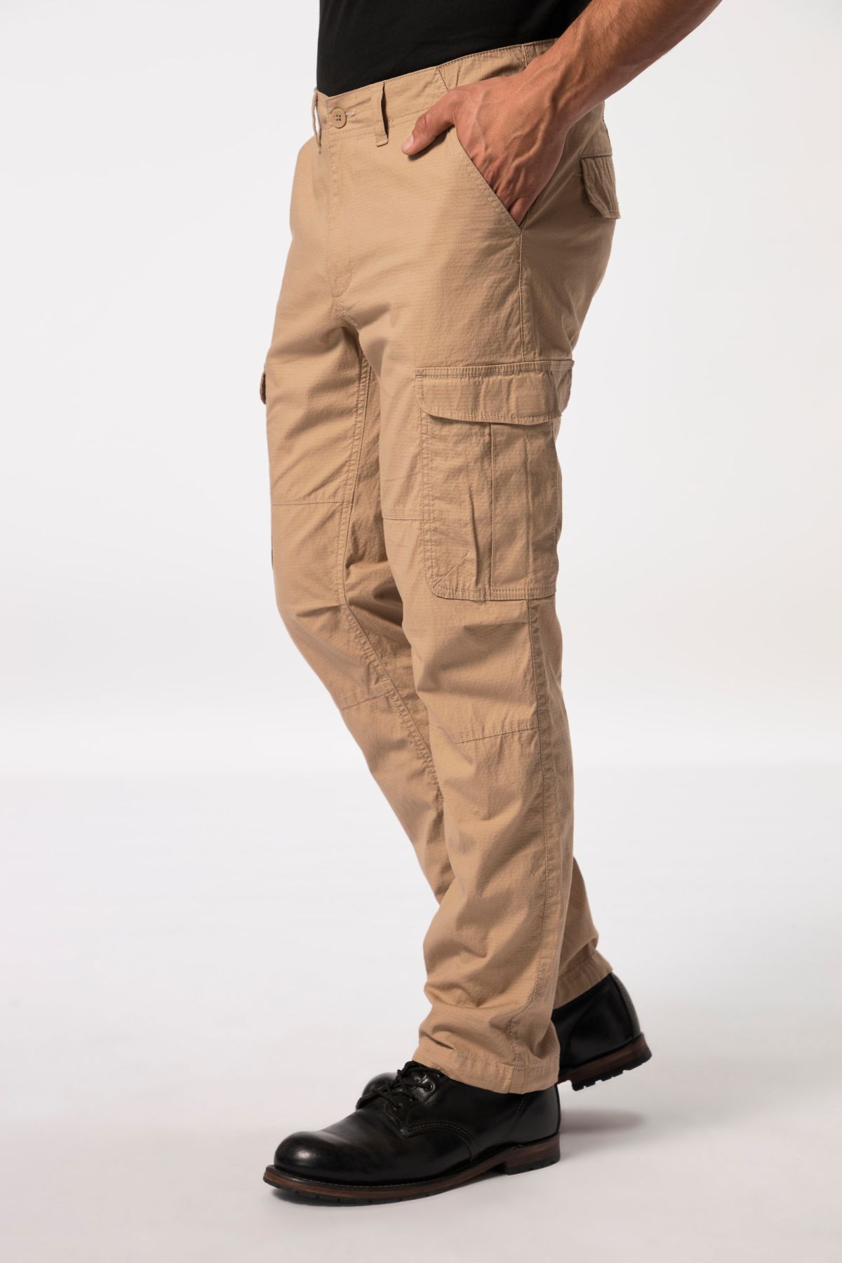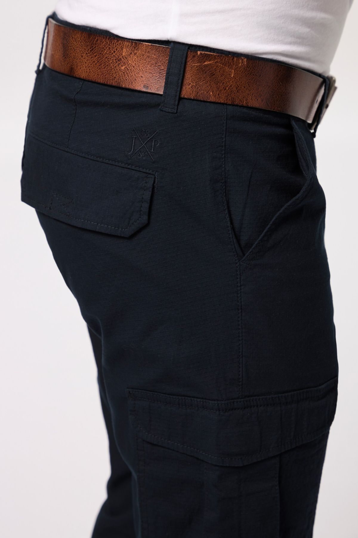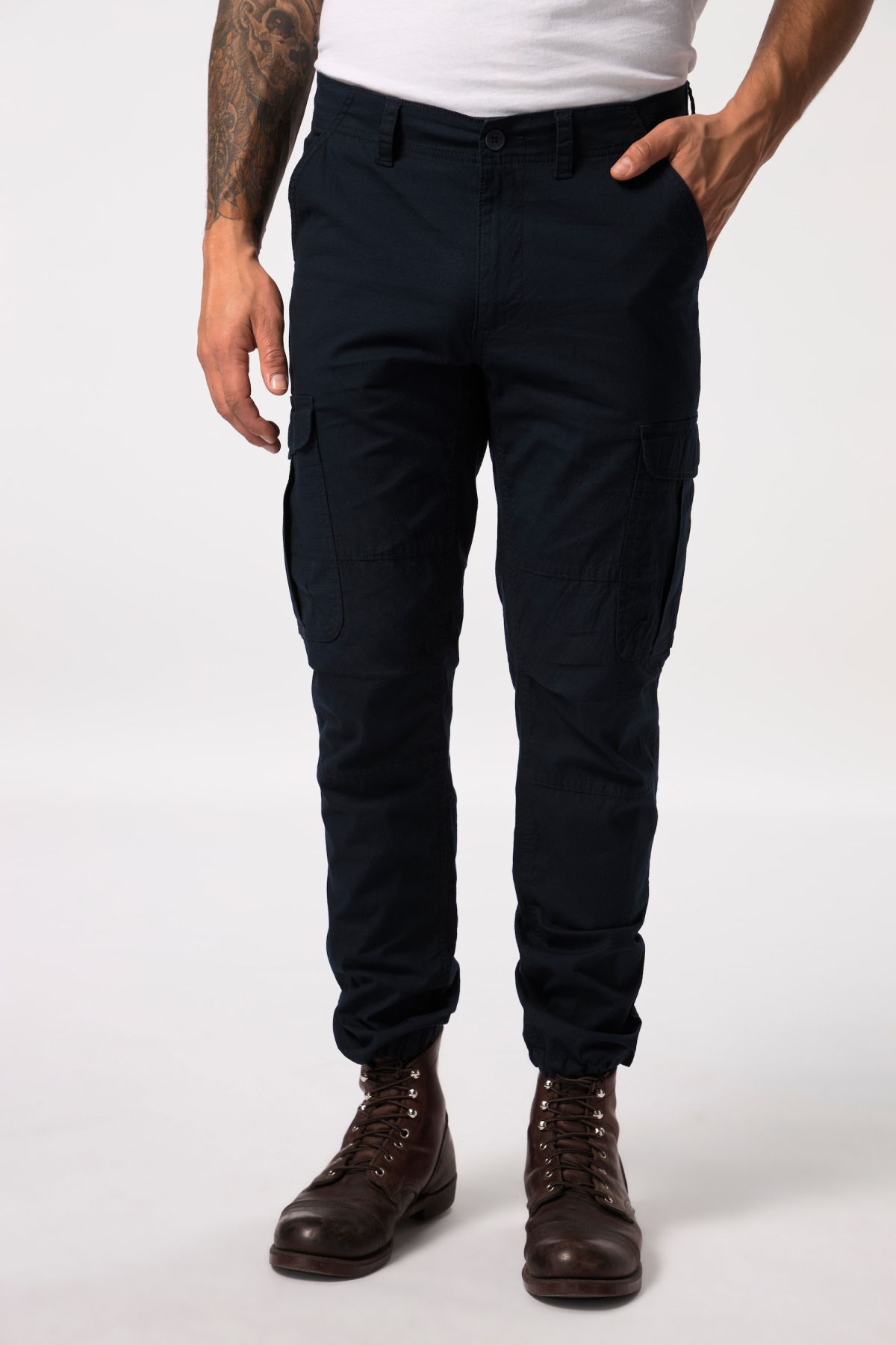 Панталон с карго джобове от супер еластична материя - перфектна визия и комфорт при носене. С талия с гайки за колан, множество джобове и регулиращ подгъв отвътре.