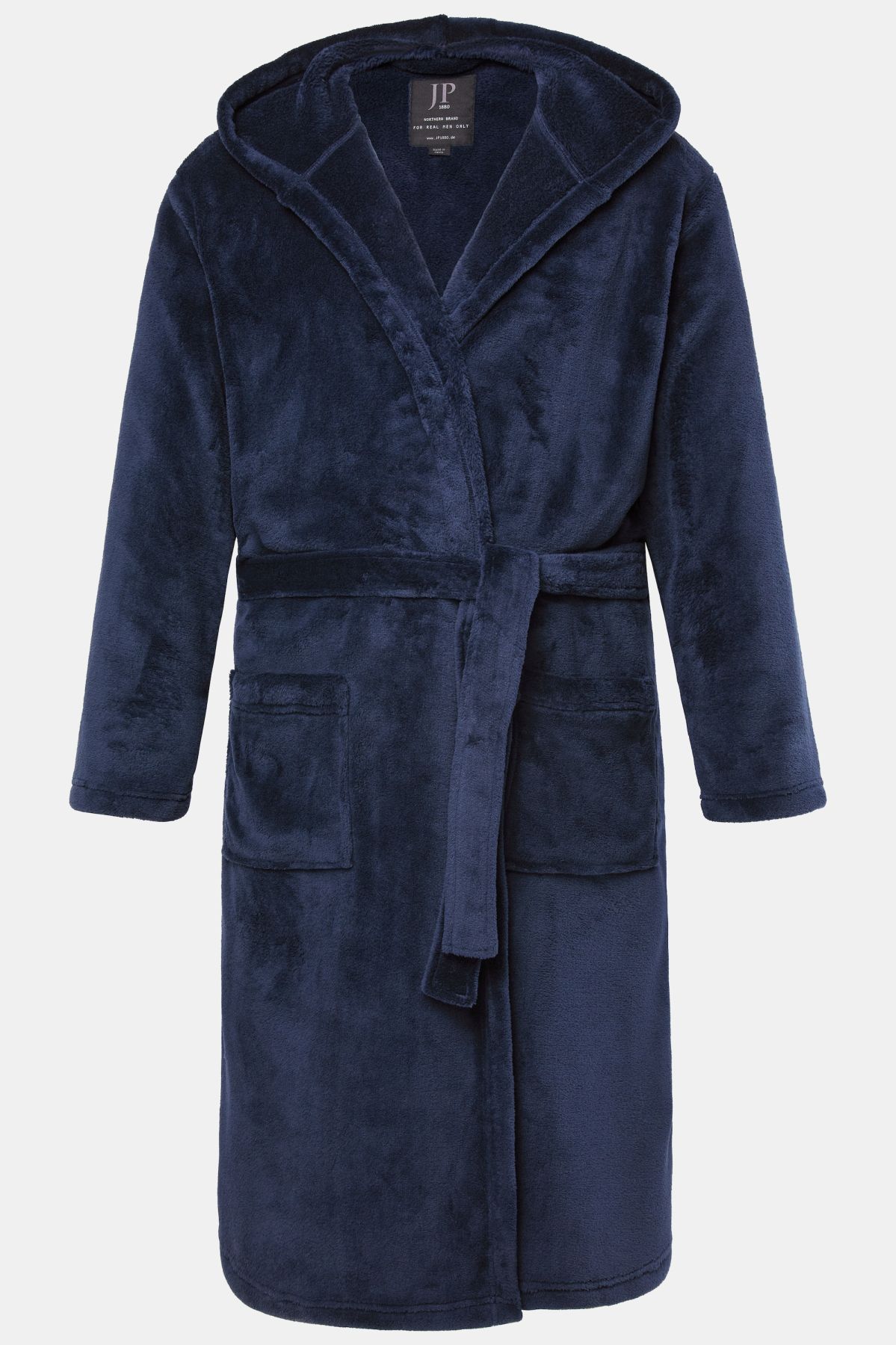Халат JP1880 за баня с качулка. Дълги ръкави, предни джобове и колан за пристягане. Подходящ за баня, сауна и дома. Изработен от мек микрофибър.