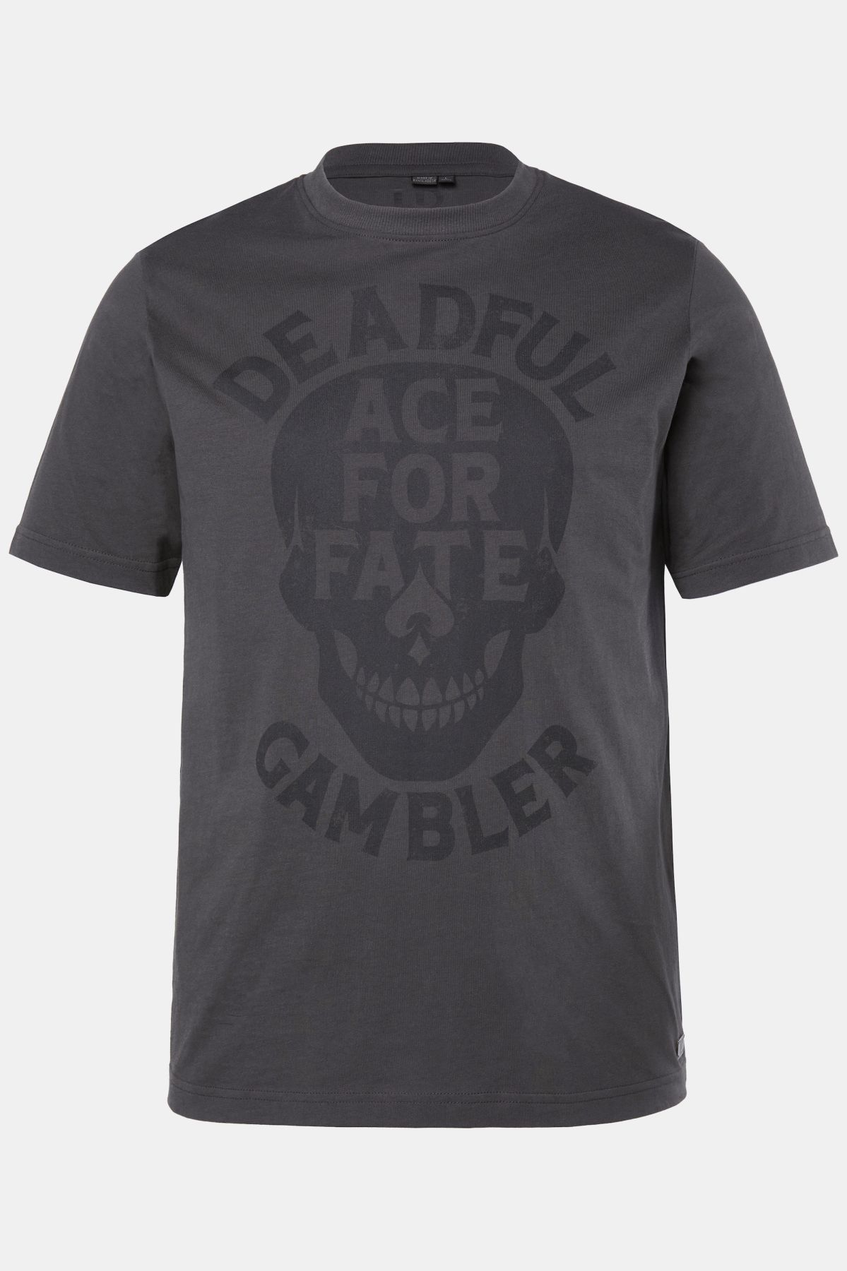 Тениска с щампа на череп и надпис на гърдите. Кръгло деколте по врата и къси ръкави с маншет. Изработена от висококачествен памучен трикотаж.