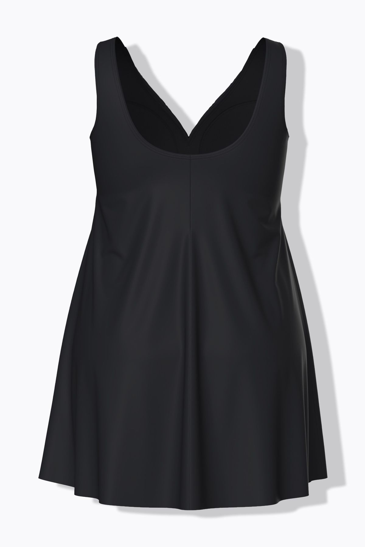 Бански тип рокля със сърцевидно деколте и закачлив детайл с ресни. С оформени чашки с банели, еластична лента под бюста за поддържане и подплата отпред. Изработен от рециклирани материали.