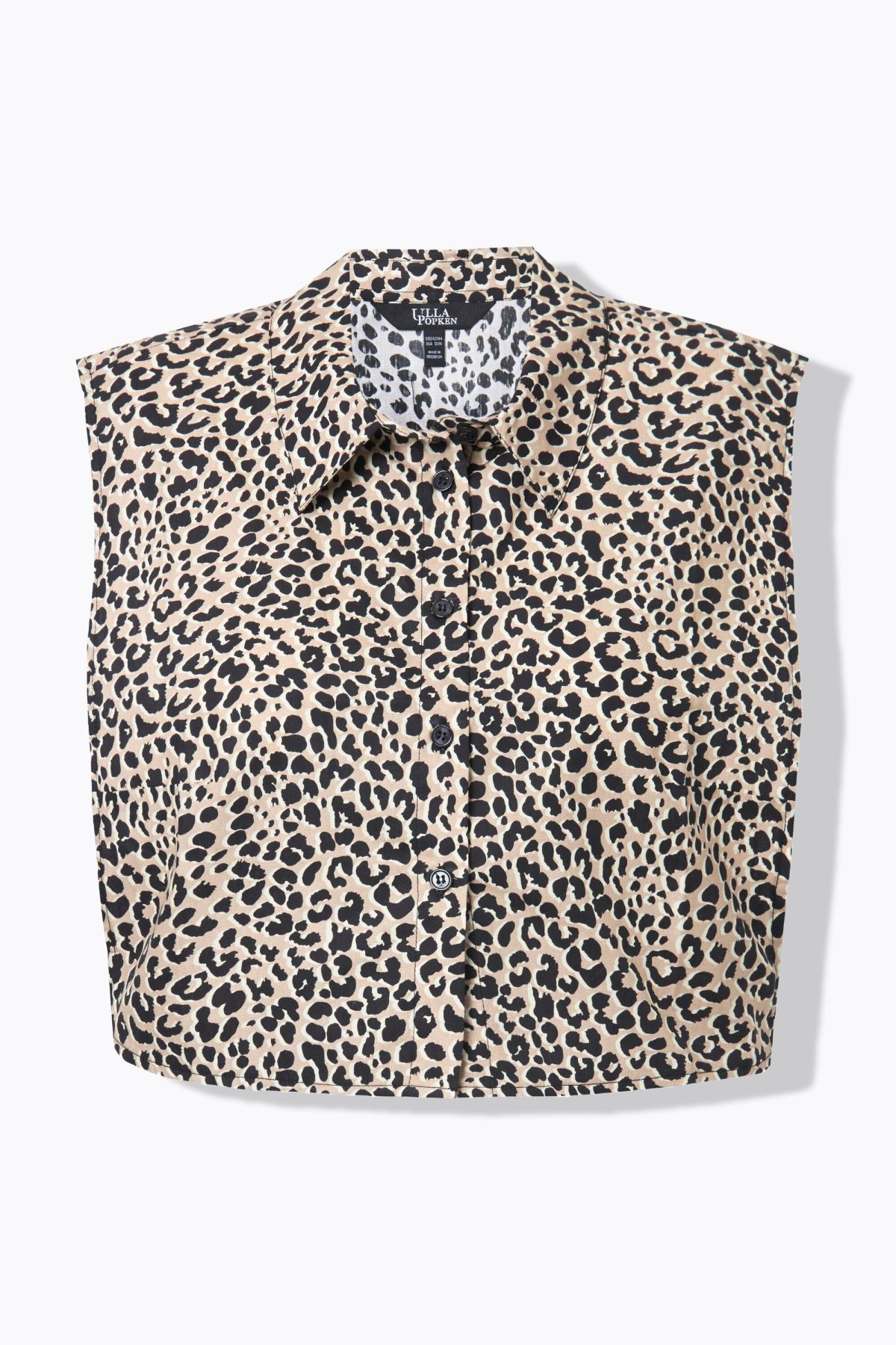Модерен леопардов принт, закопчаване с копчета, идеален за наслояване, чист памук, дължина приблизително 40-45 см.