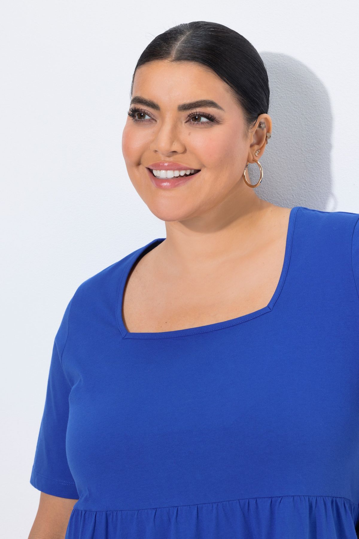 Туника с геометричен принт на подгъва с А - линия на силуета. С квадратно деколте и къси ръкави. Стил и комфорт в ежедневието.