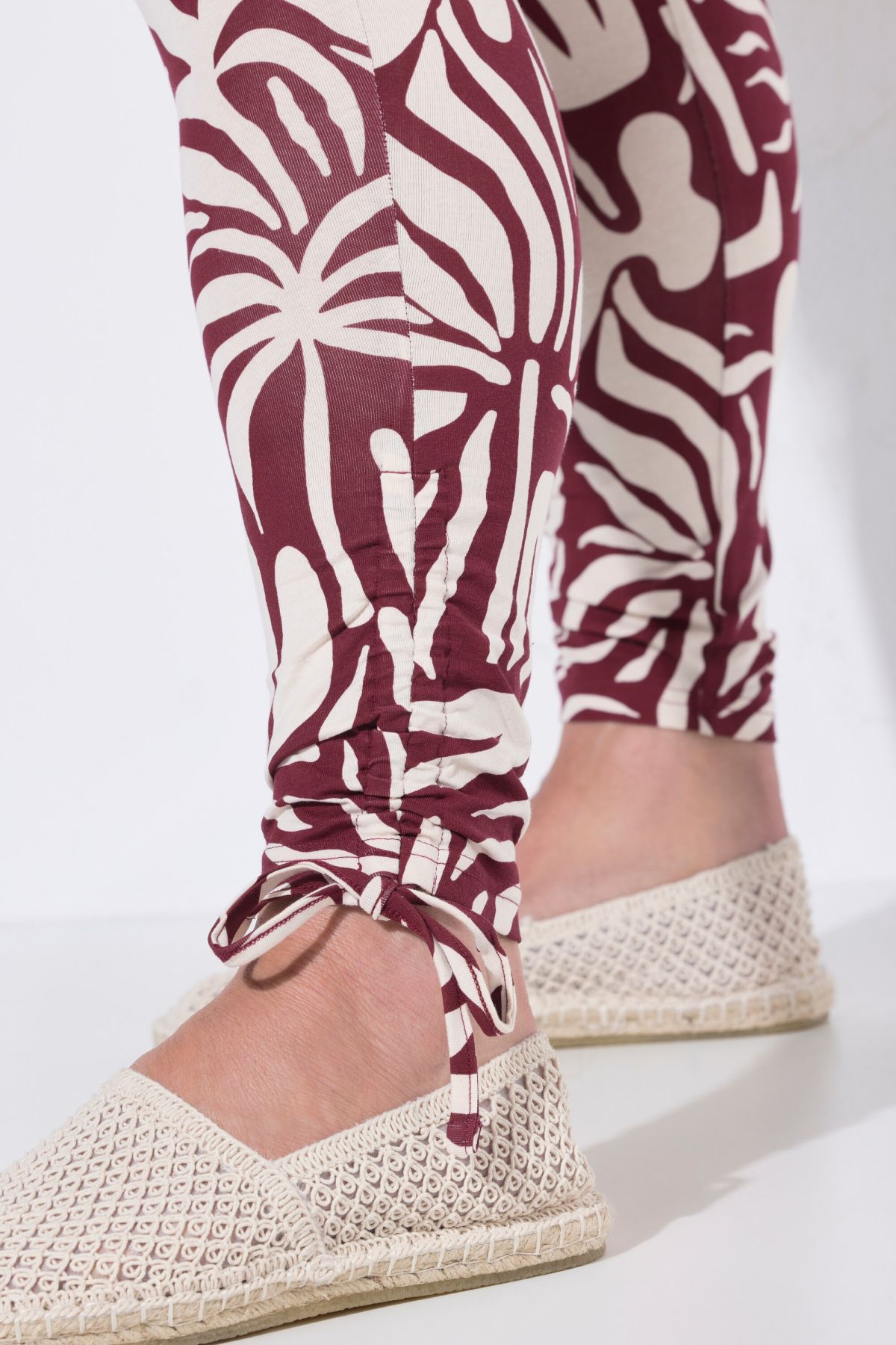 Абстрактен мотив на листа, акцент: набран детайл отстрани на подгъва, тесен крачол, удобна еластична талия, устойчив органичен памук с еластан, вътрешен шев приблизително 72 см.